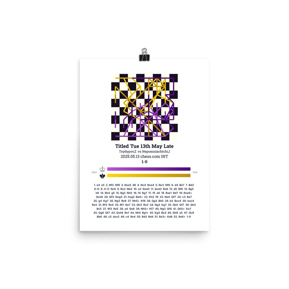 Museum-quality poster on thick, durable matte paper. A sharp, clean look for any chess visualisation.