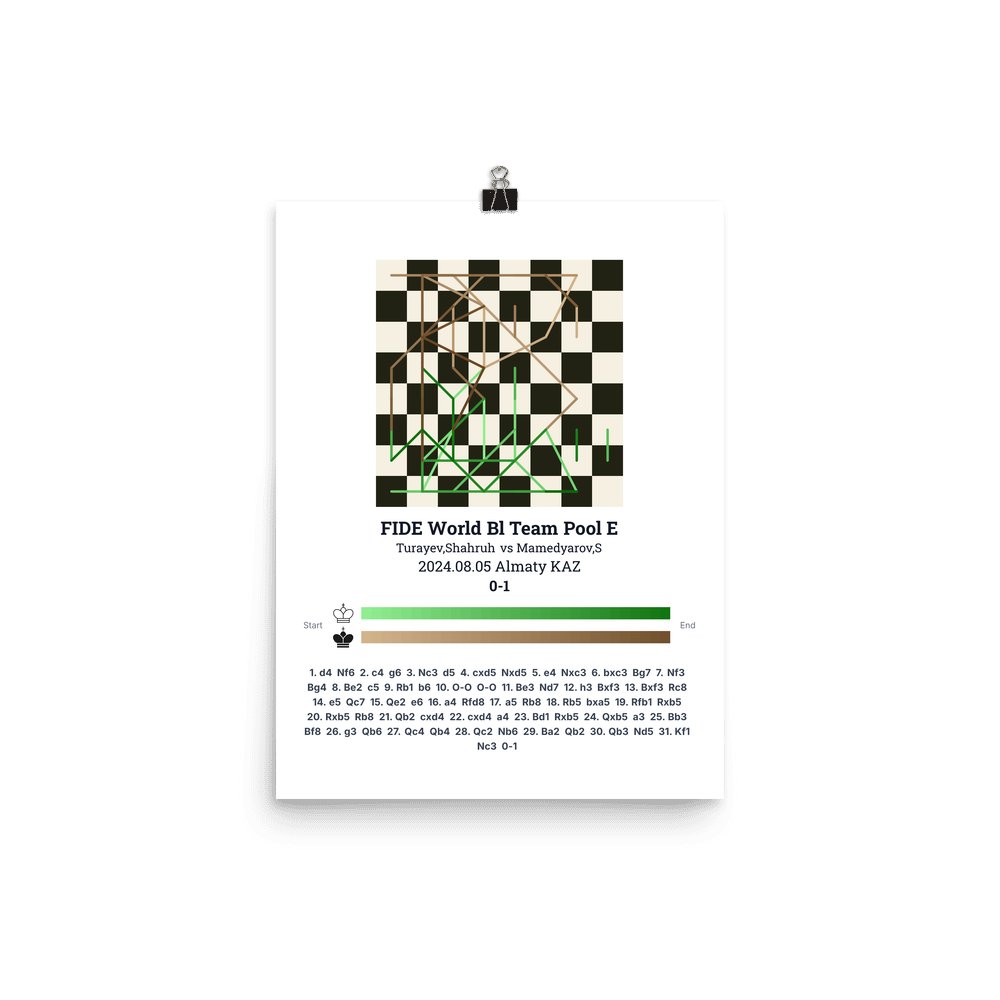 Museum-quality poster on thick, durable matte paper. A sharp, clean look for any chess visualisation.