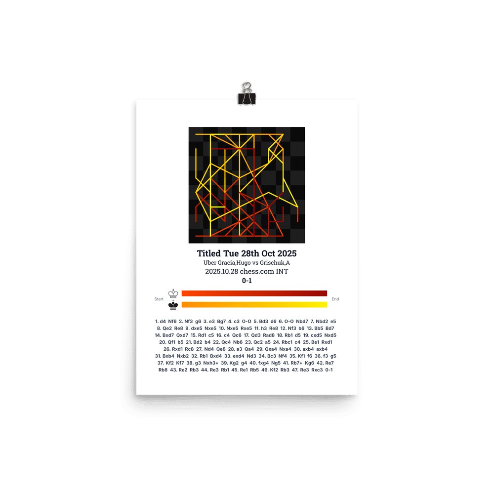 Museum-quality poster on thick, durable matte paper. A sharp, clean look for any chess visualisation.