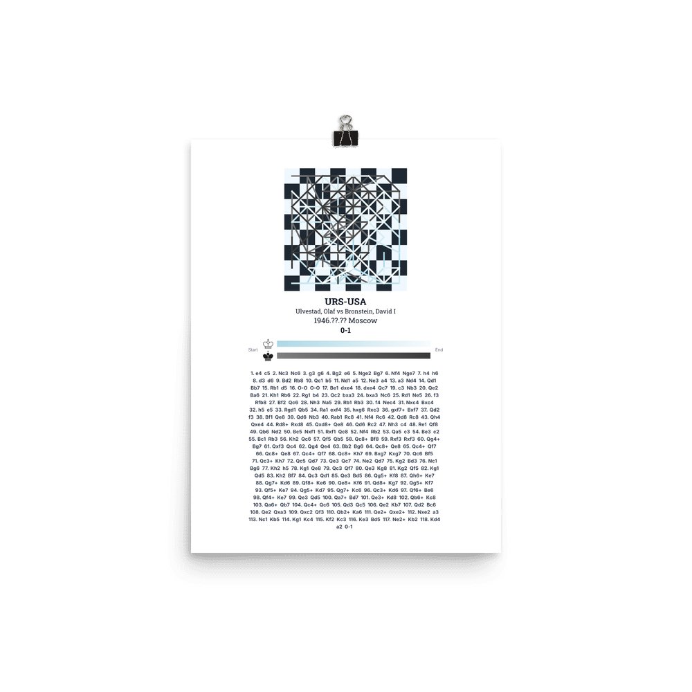 Museum-quality poster on thick, durable matte paper. A sharp, clean look for any chess visualisation.