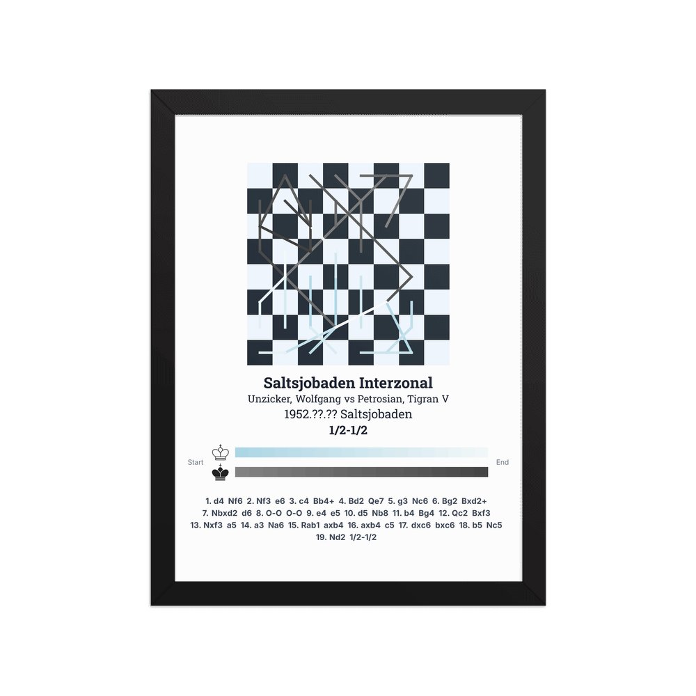 Museum-quality poster on thick, durable matte paper. A sharp, clean look for any chess visualisation.