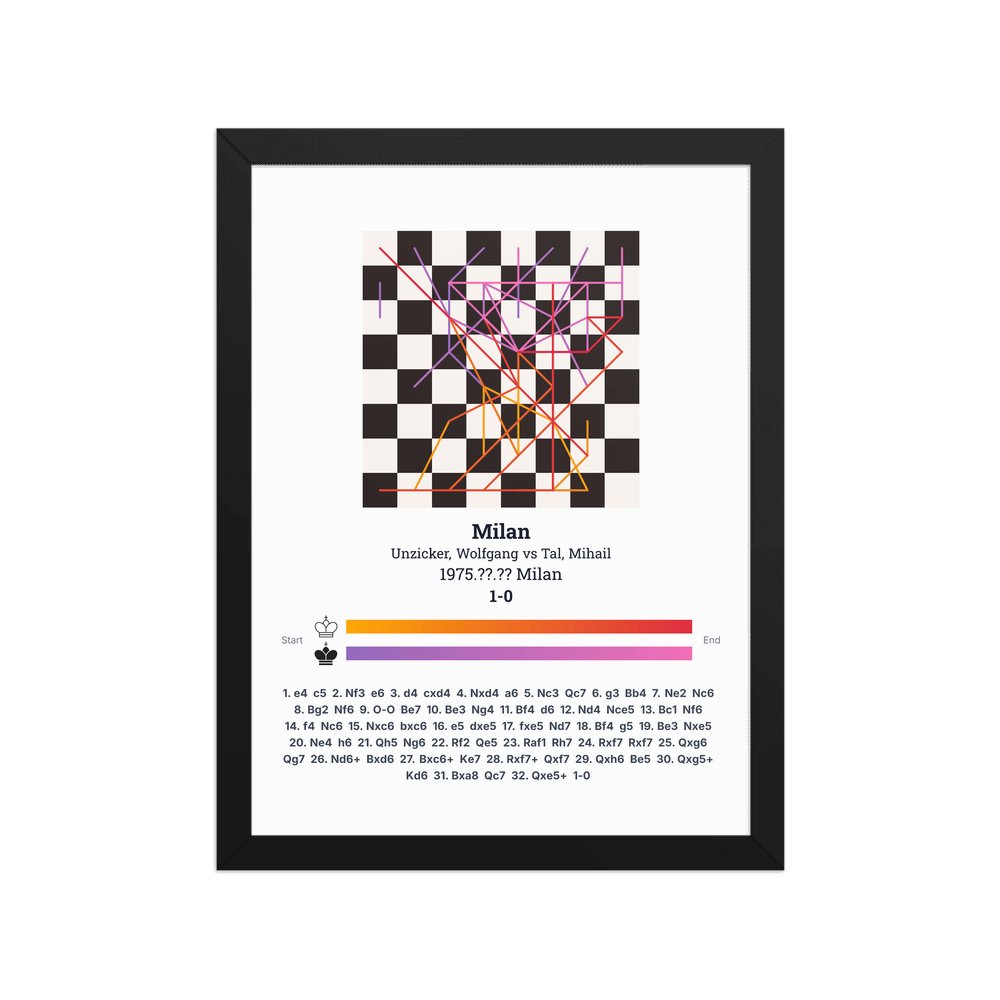 Museum-quality poster on thick, durable matte paper. A sharp, clean look for any chess visualisation.
