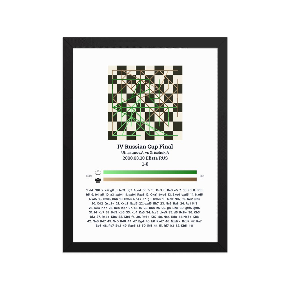 Museum-quality poster on thick, durable matte paper. A sharp, clean look for any chess visualisation.