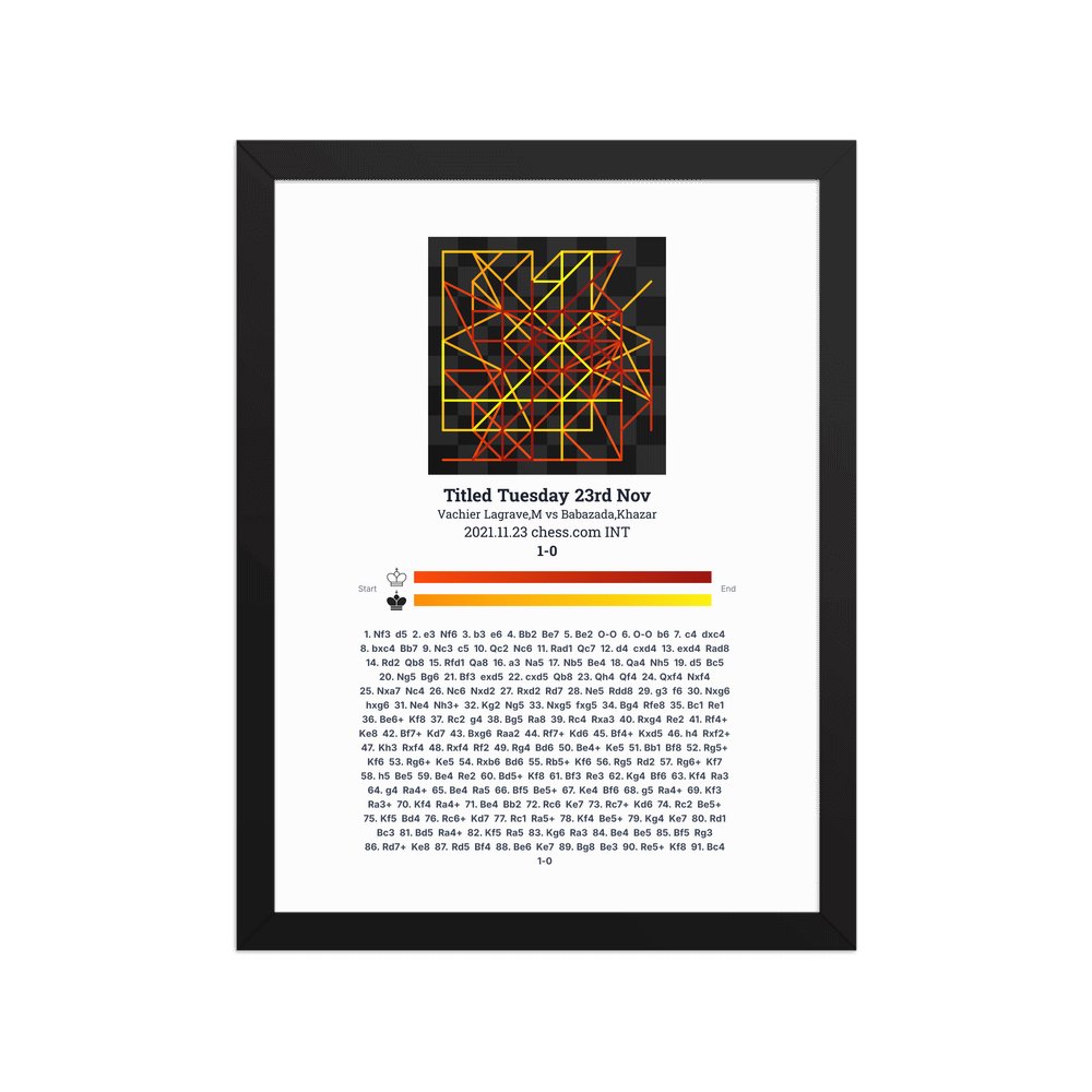 Museum-quality poster on thick, durable matte paper. A sharp, clean look for any chess visualisation.