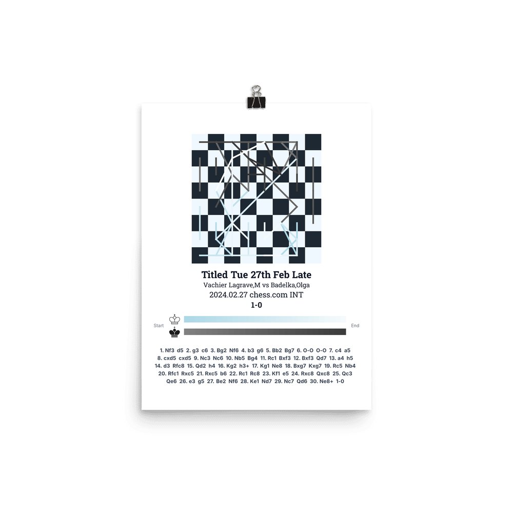 Museum-quality poster on thick, durable matte paper. A sharp, clean look for any chess visualisation.