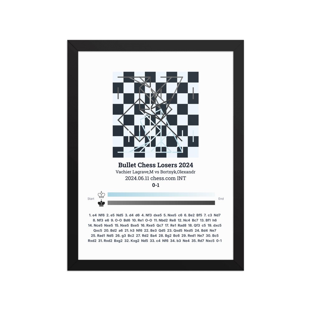Museum-quality poster on thick, durable matte paper. A sharp, clean look for any chess visualisation.