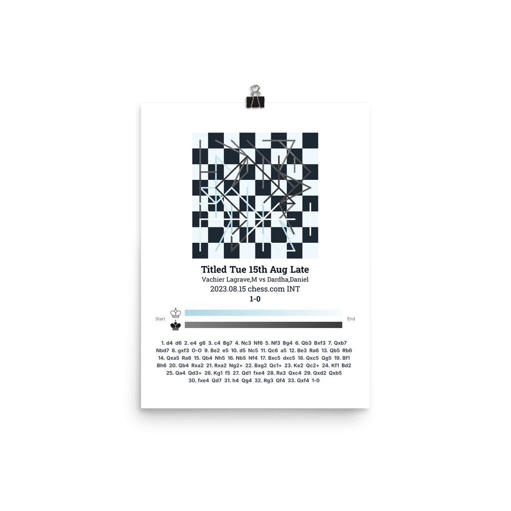Museum-quality poster on thick, durable matte paper. A sharp, clean look for any chess visualisation.