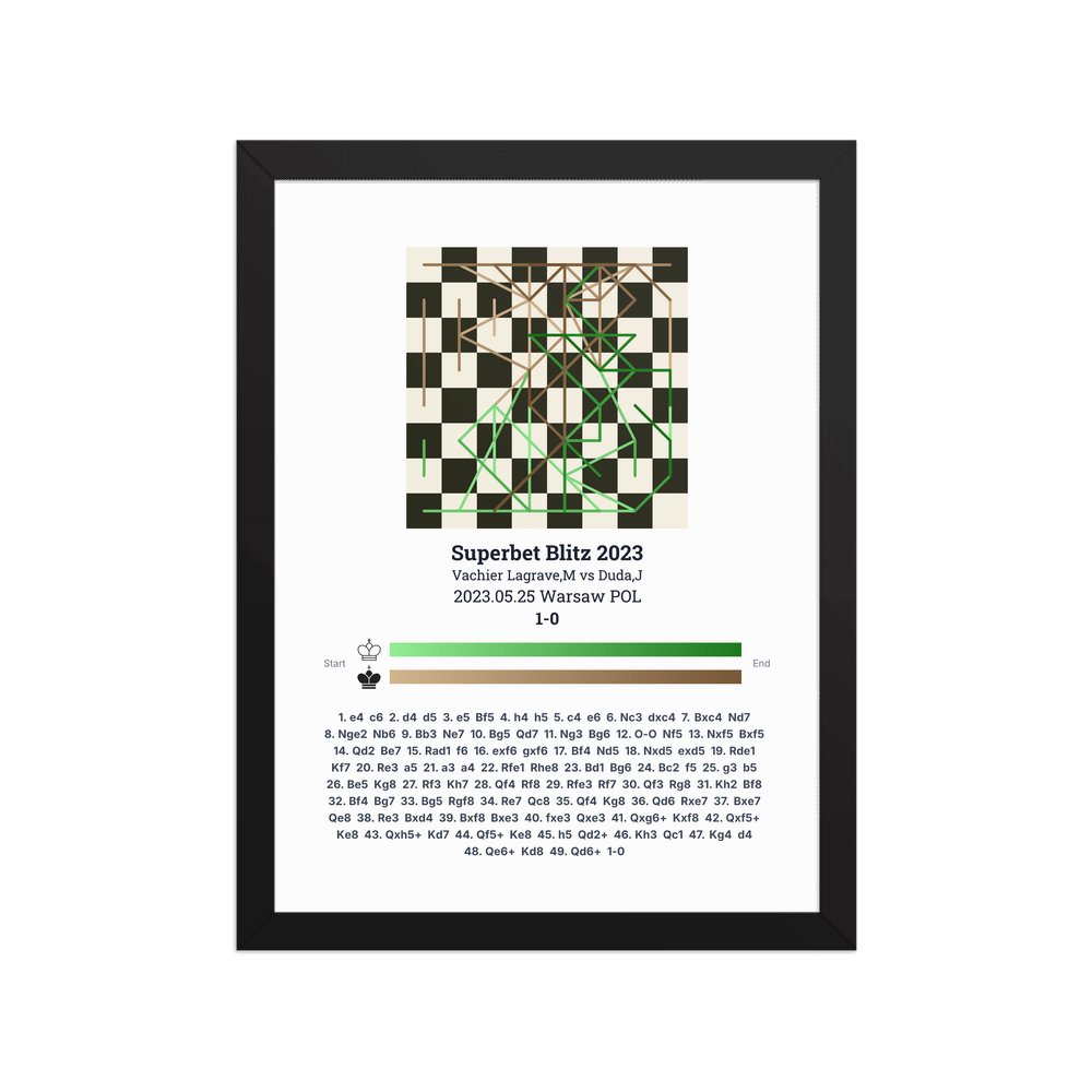 Museum-quality poster on thick, durable matte paper. A sharp, clean look for any chess visualisation.