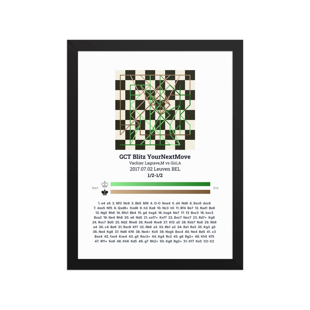 Museum-quality poster on thick, durable matte paper. A sharp, clean look for any chess visualisation.