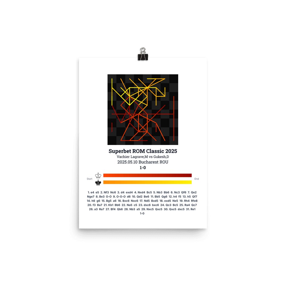 Museum-quality poster on thick, durable matte paper. A sharp, clean look for any chess visualisation.