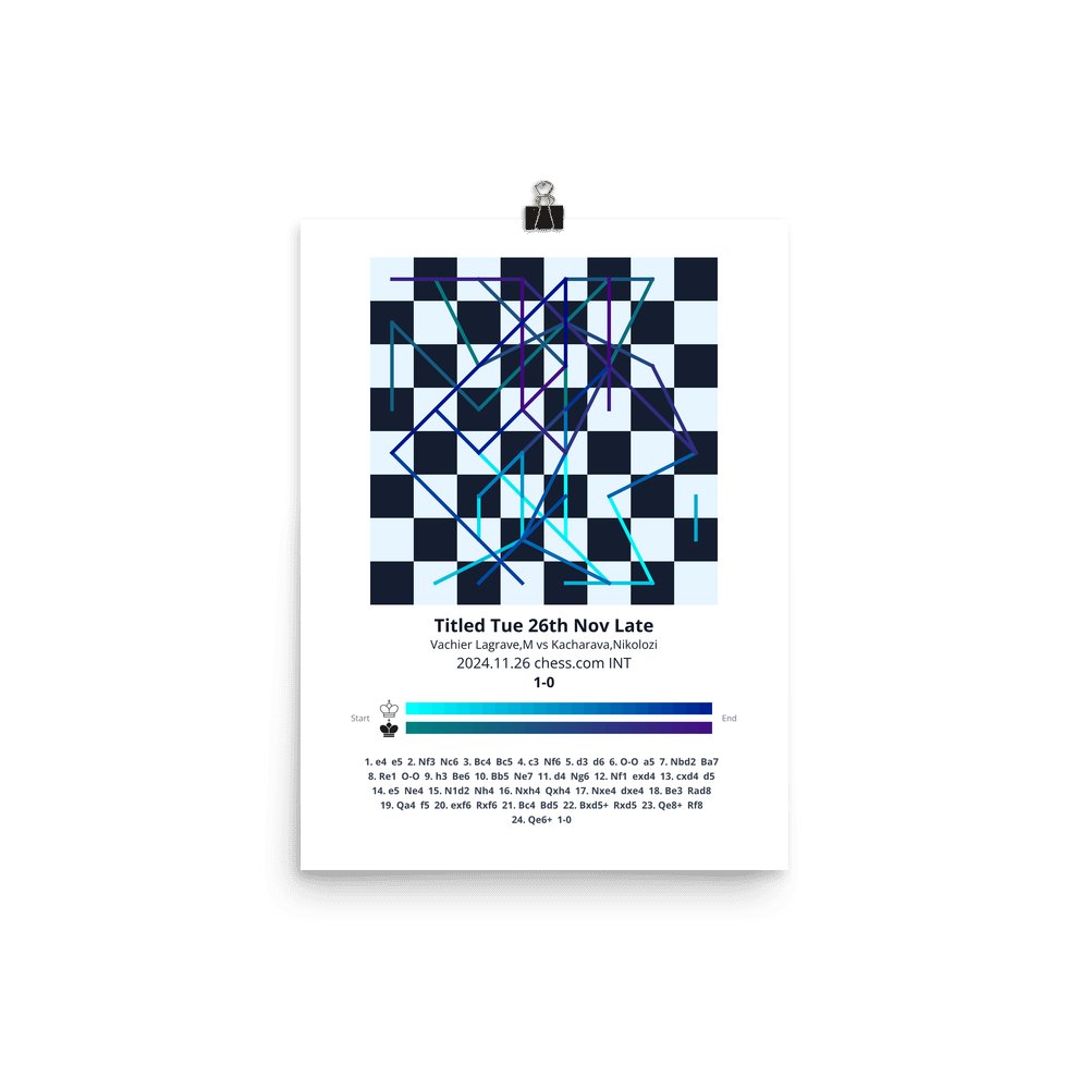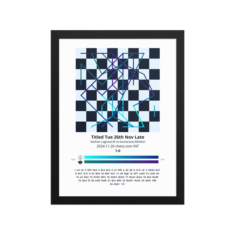 Museum-quality poster on thick, durable matte paper. A sharp, clean look for any chess visualisation.