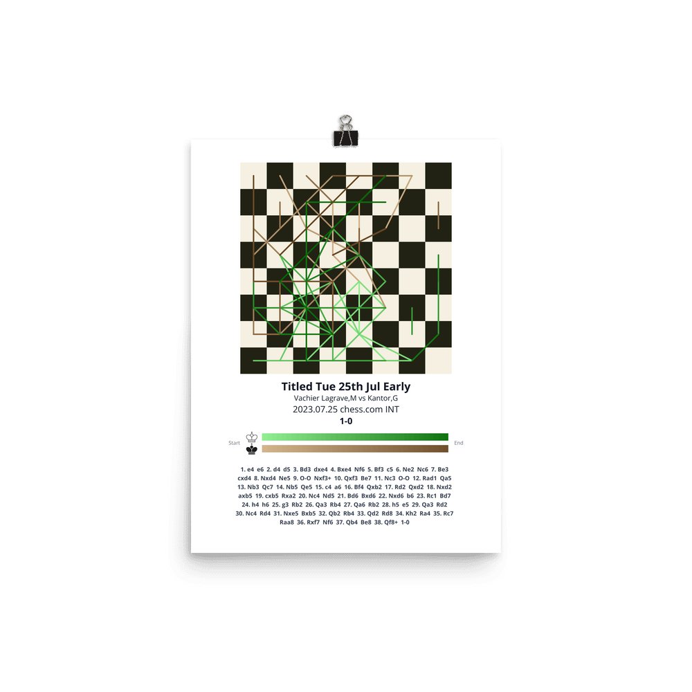 Museum-quality poster on thick, durable matte paper. A sharp, clean look for any chess visualisation.