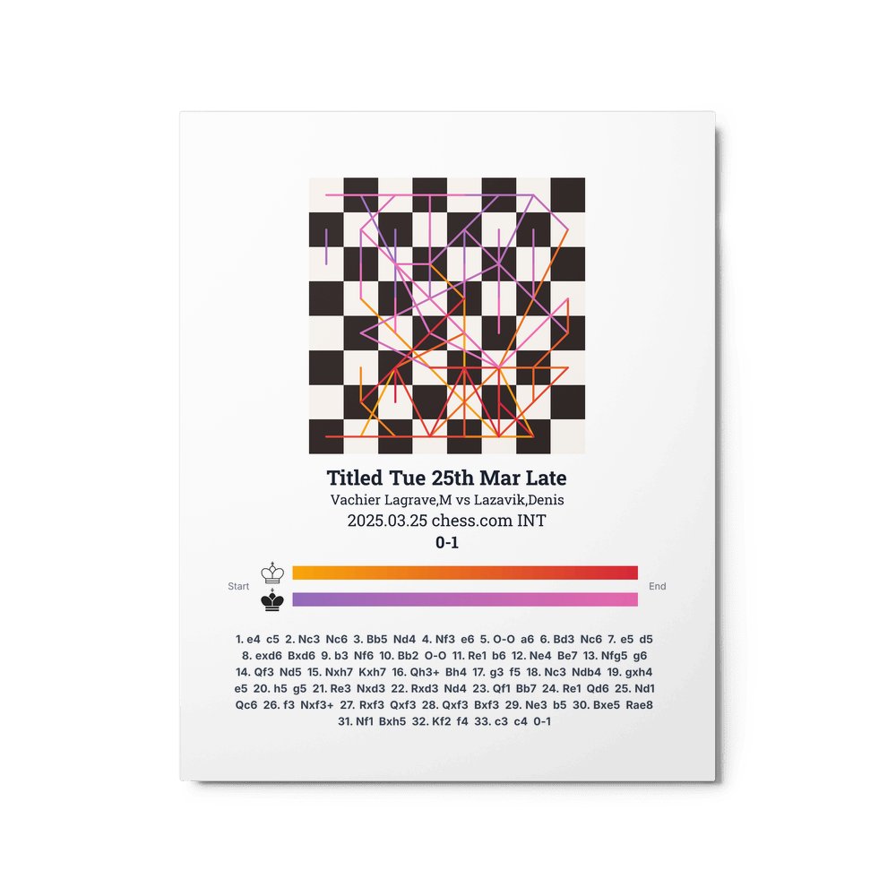 Museum-quality poster on thick, durable matte paper. A sharp, clean look for any chess visualisation.