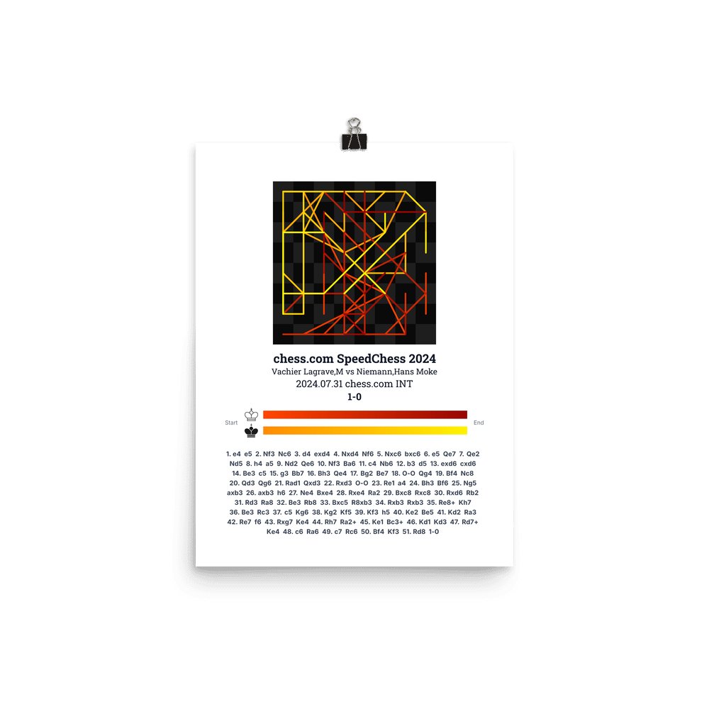 Museum-quality poster on thick, durable matte paper. A sharp, clean look for any chess visualisation.