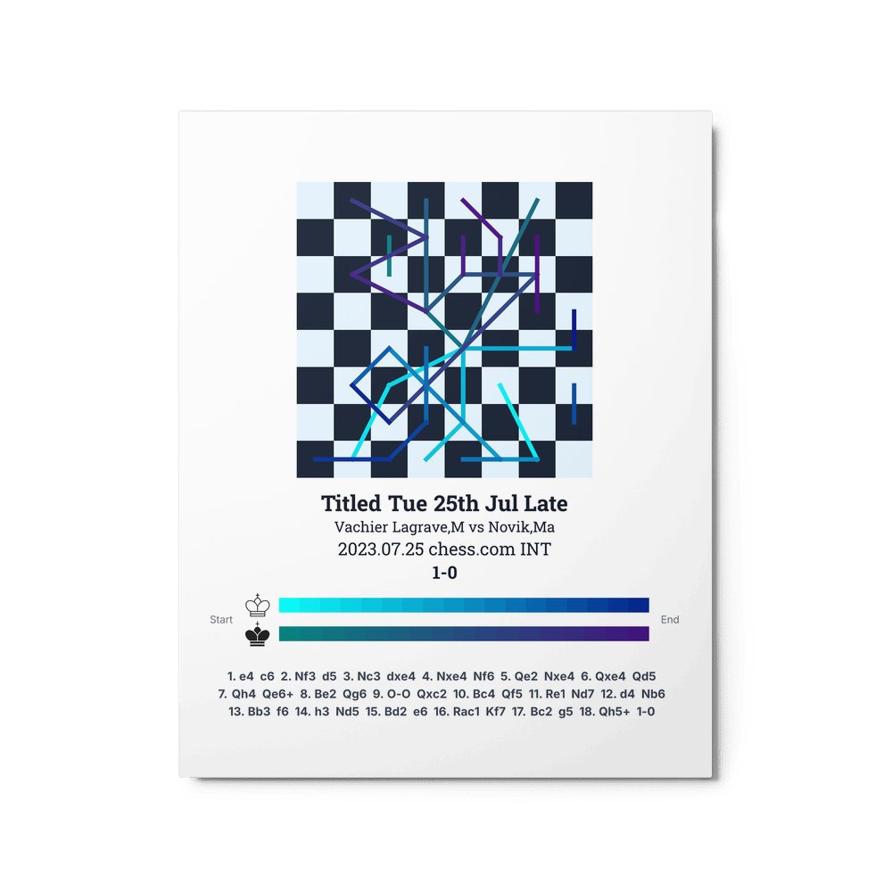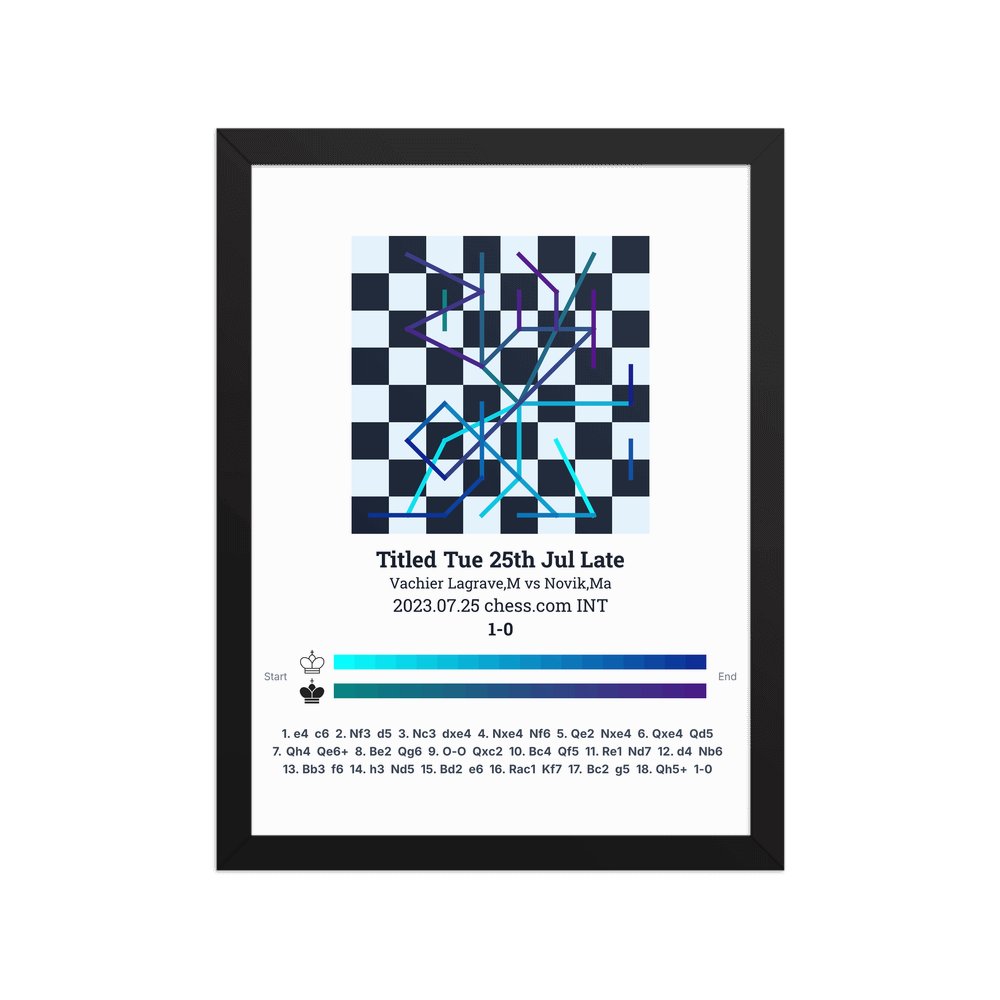 Museum-quality poster on thick, durable matte paper. A sharp, clean look for any chess visualisation.