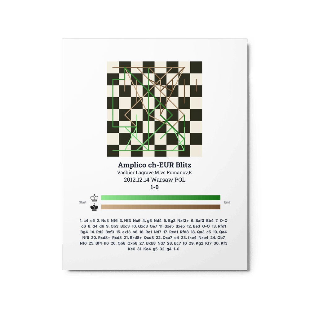 Museum-quality poster on thick, durable matte paper. A sharp, clean look for any chess visualisation.