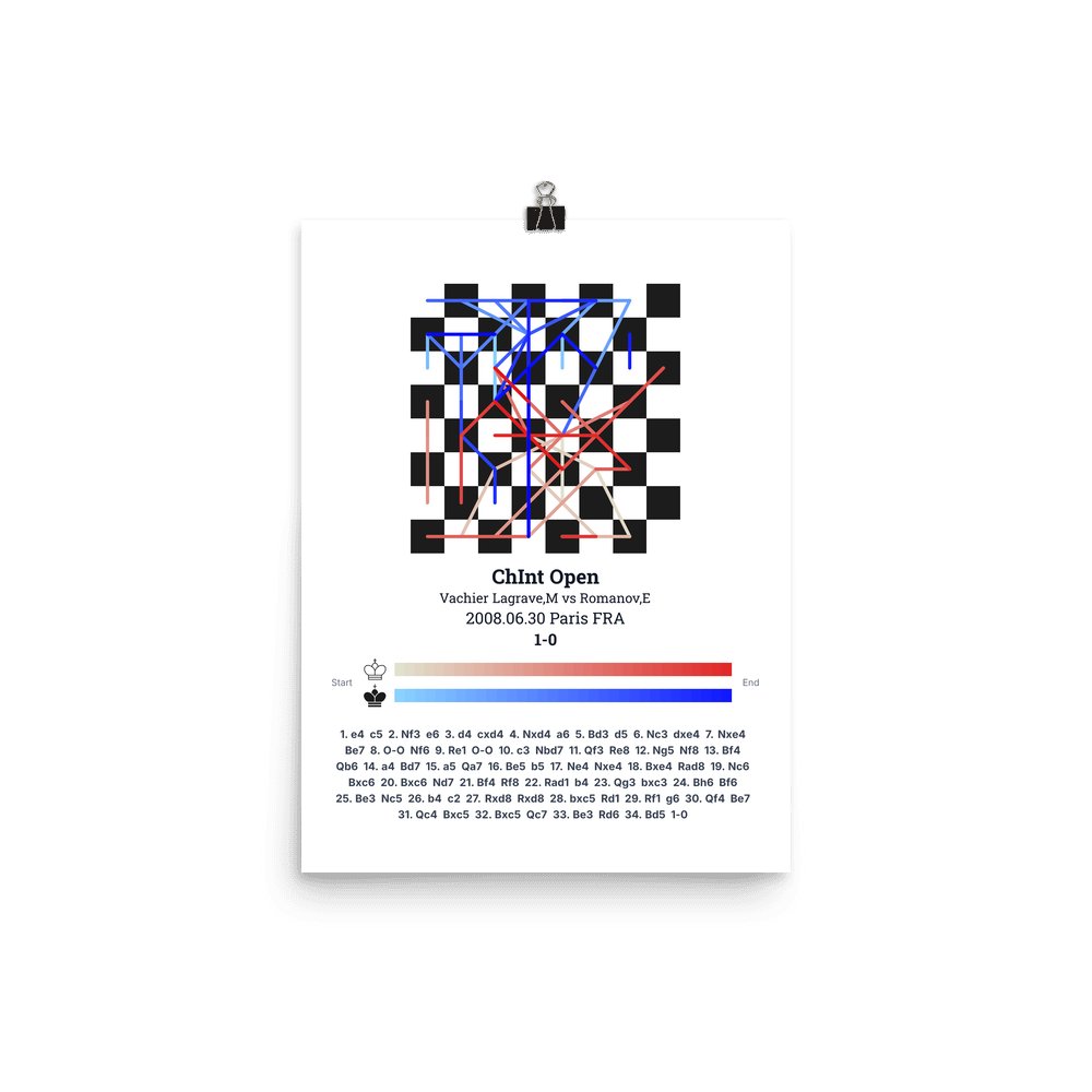 Museum-quality poster on thick, durable matte paper. A sharp, clean look for any chess visualisation.