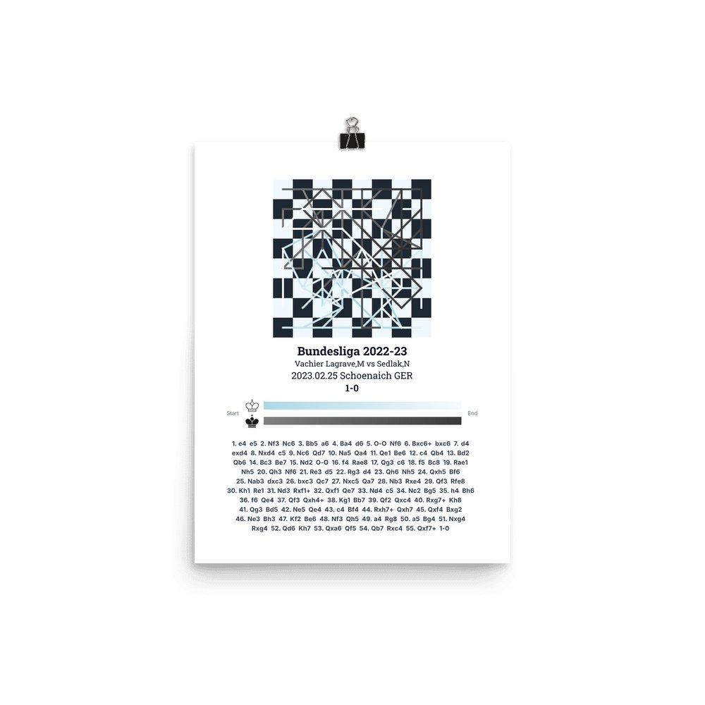 Museum-quality poster on thick, durable matte paper. A sharp, clean look for any chess visualisation.