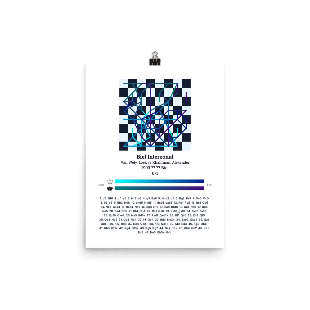 Museum-quality poster on thick, durable matte paper. A sharp, clean look for any chess visualisation.