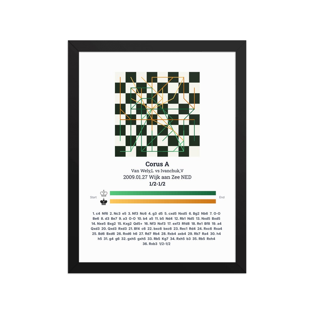 Museum-quality poster on thick, durable matte paper. A sharp, clean look for any chess visualisation.