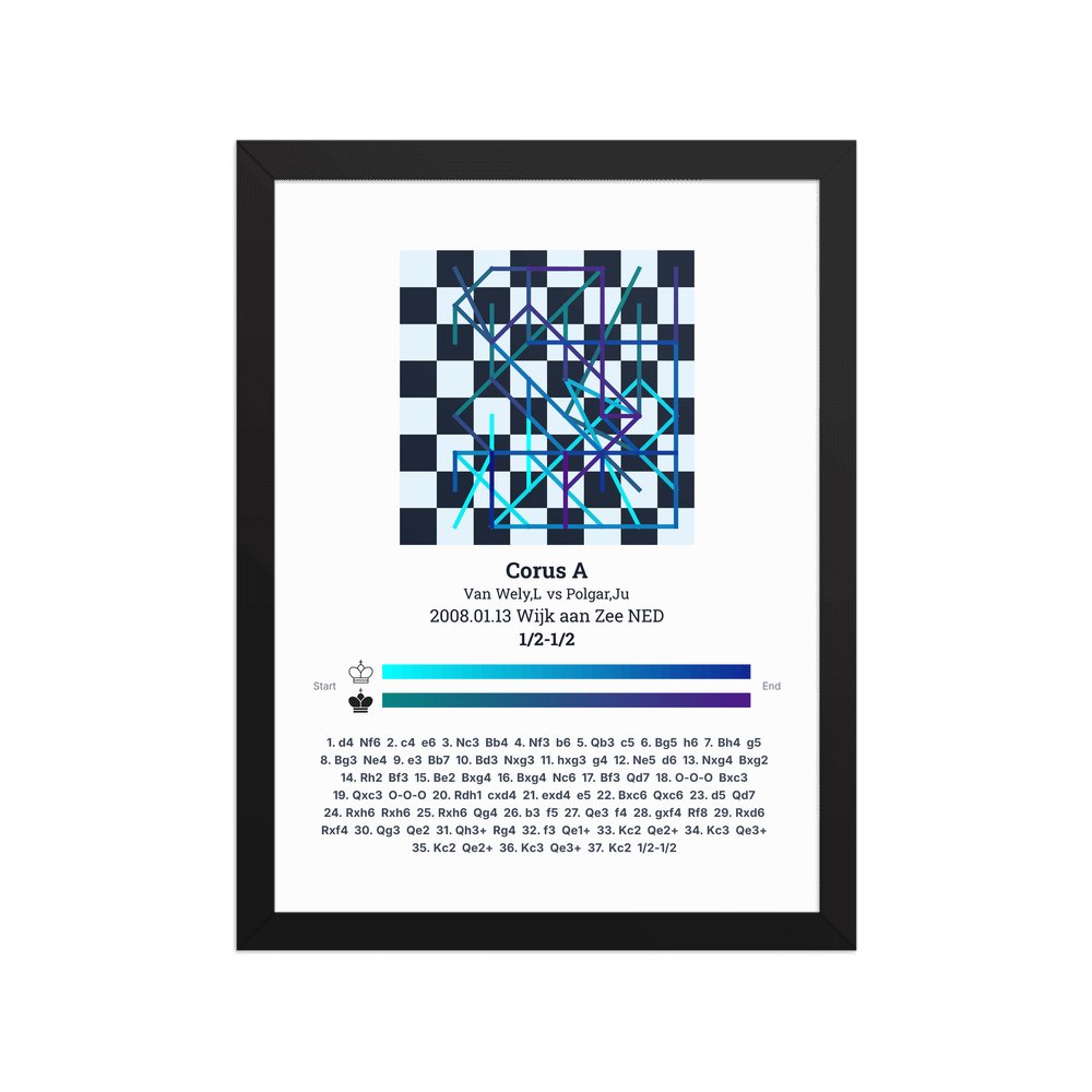 Museum-quality poster on thick, durable matte paper. A sharp, clean look for any chess visualisation.