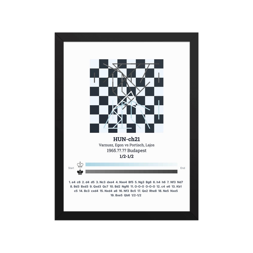 Museum-quality poster on thick, durable matte paper. A sharp, clean look for any chess visualisation.