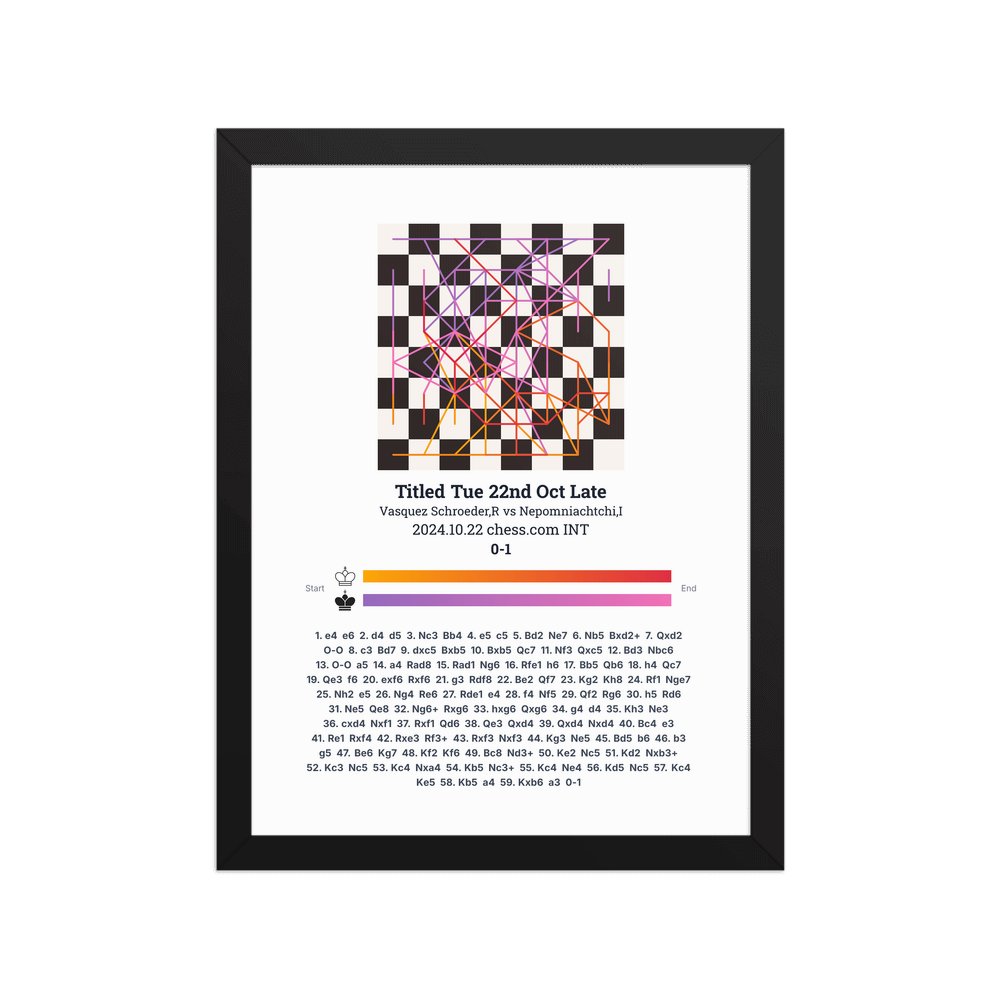 Museum-quality poster on thick, durable matte paper. A sharp, clean look for any chess visualisation.