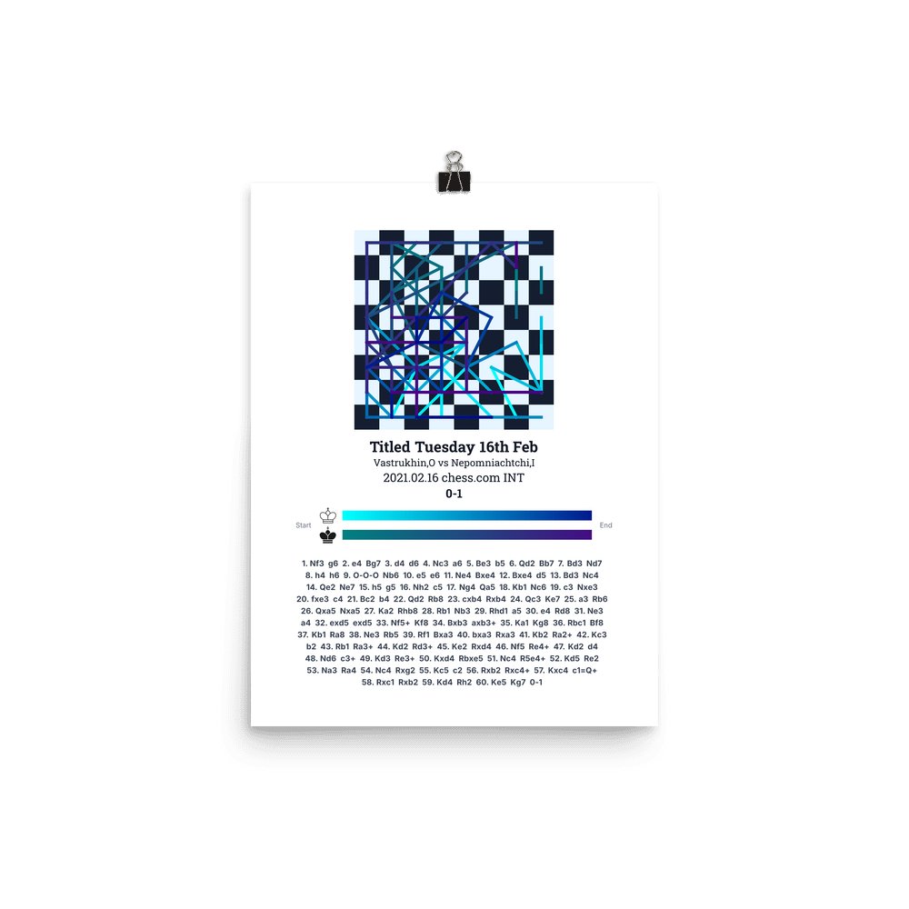 Museum-quality poster on thick, durable matte paper. A sharp, clean look for any chess visualisation.
