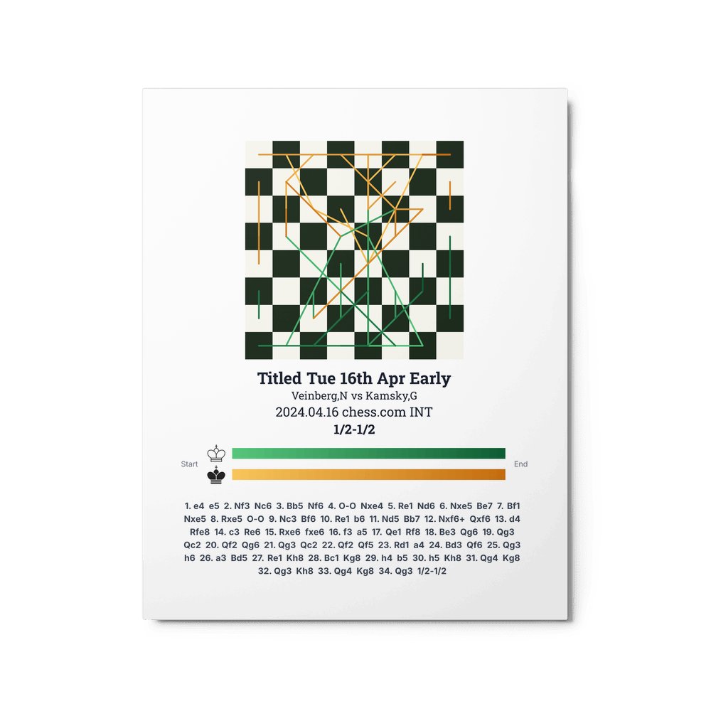 Museum-quality poster on thick, durable matte paper. A sharp, clean look for any chess visualisation.