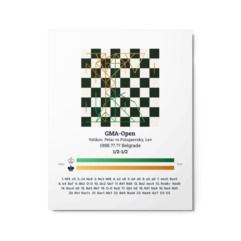 Museum-quality poster on thick, durable matte paper. A sharp, clean look for any chess visualisation.