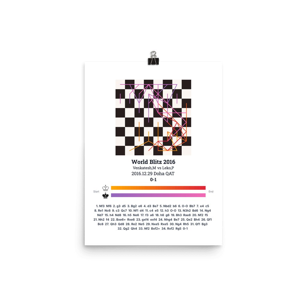 Museum-quality poster on thick, durable matte paper. A sharp, clean look for any chess visualisation.