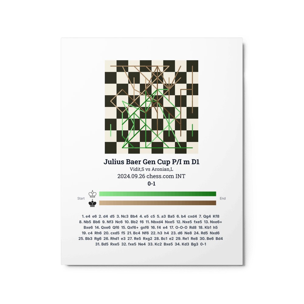 Museum-quality poster on thick, durable matte paper. A sharp, clean look for any chess visualisation.
