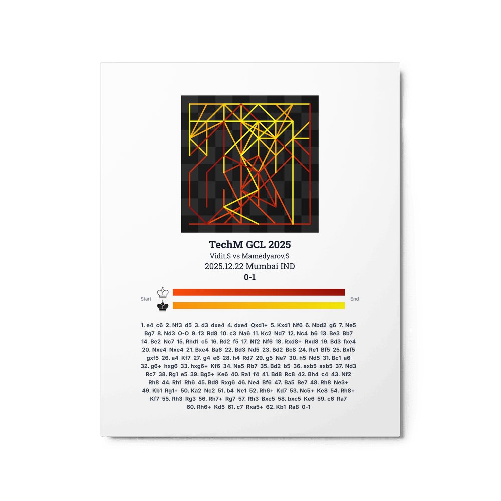 Museum-quality poster on thick, durable matte paper. A sharp, clean look for any chess visualisation.