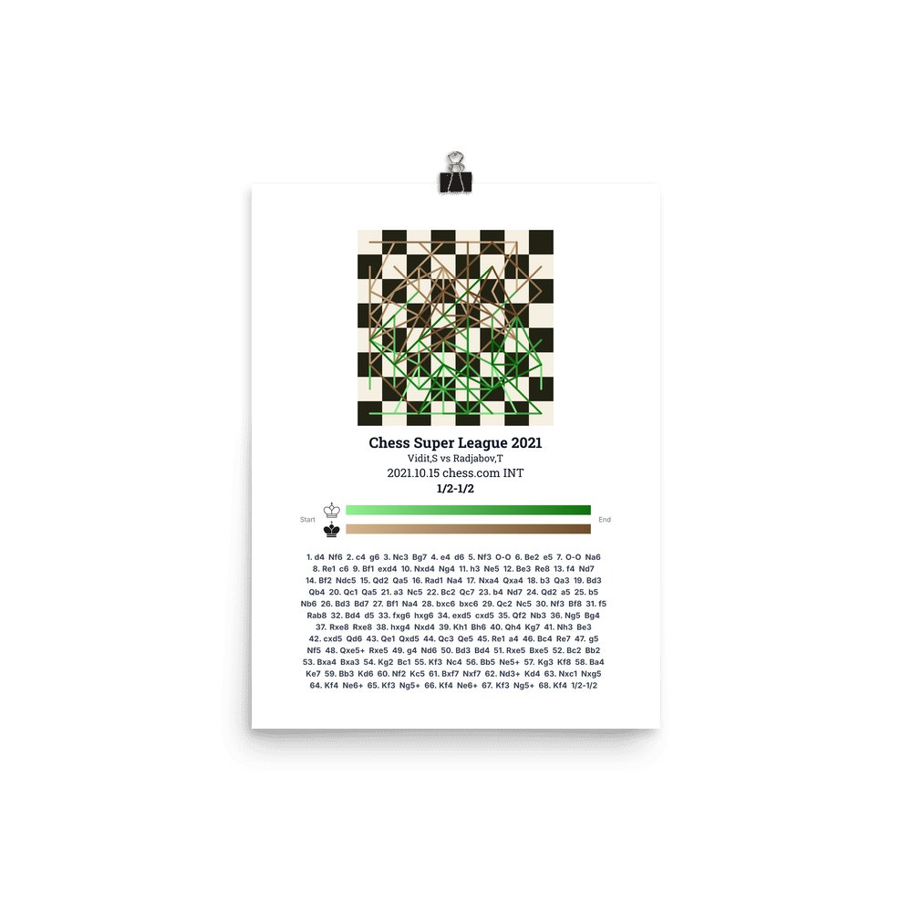 Museum-quality poster on thick, durable matte paper. A sharp, clean look for any chess visualisation.