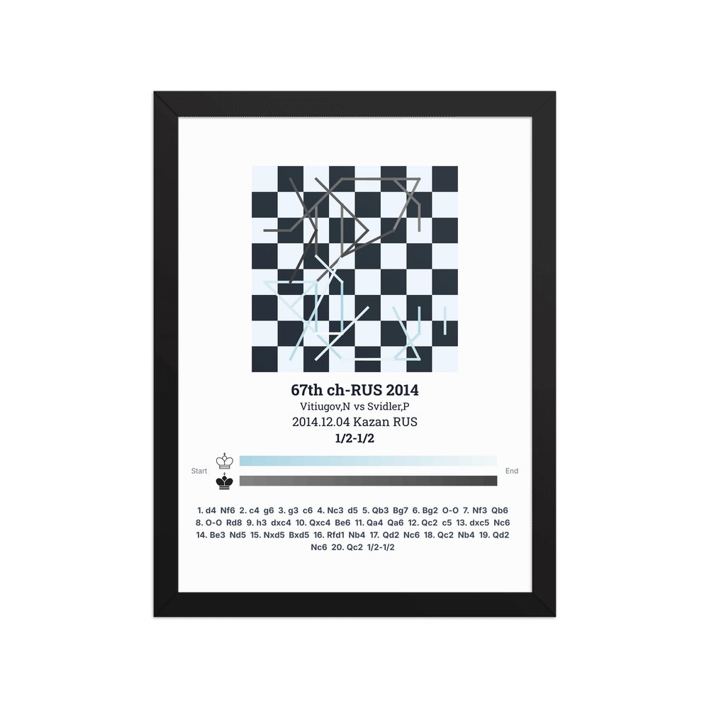 Museum-quality poster on thick, durable matte paper. A sharp, clean look for any chess visualisation.