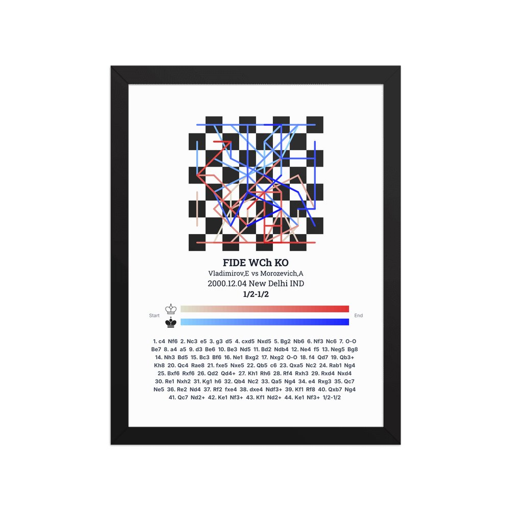 Museum-quality poster on thick, durable matte paper. A sharp, clean look for any chess visualisation.