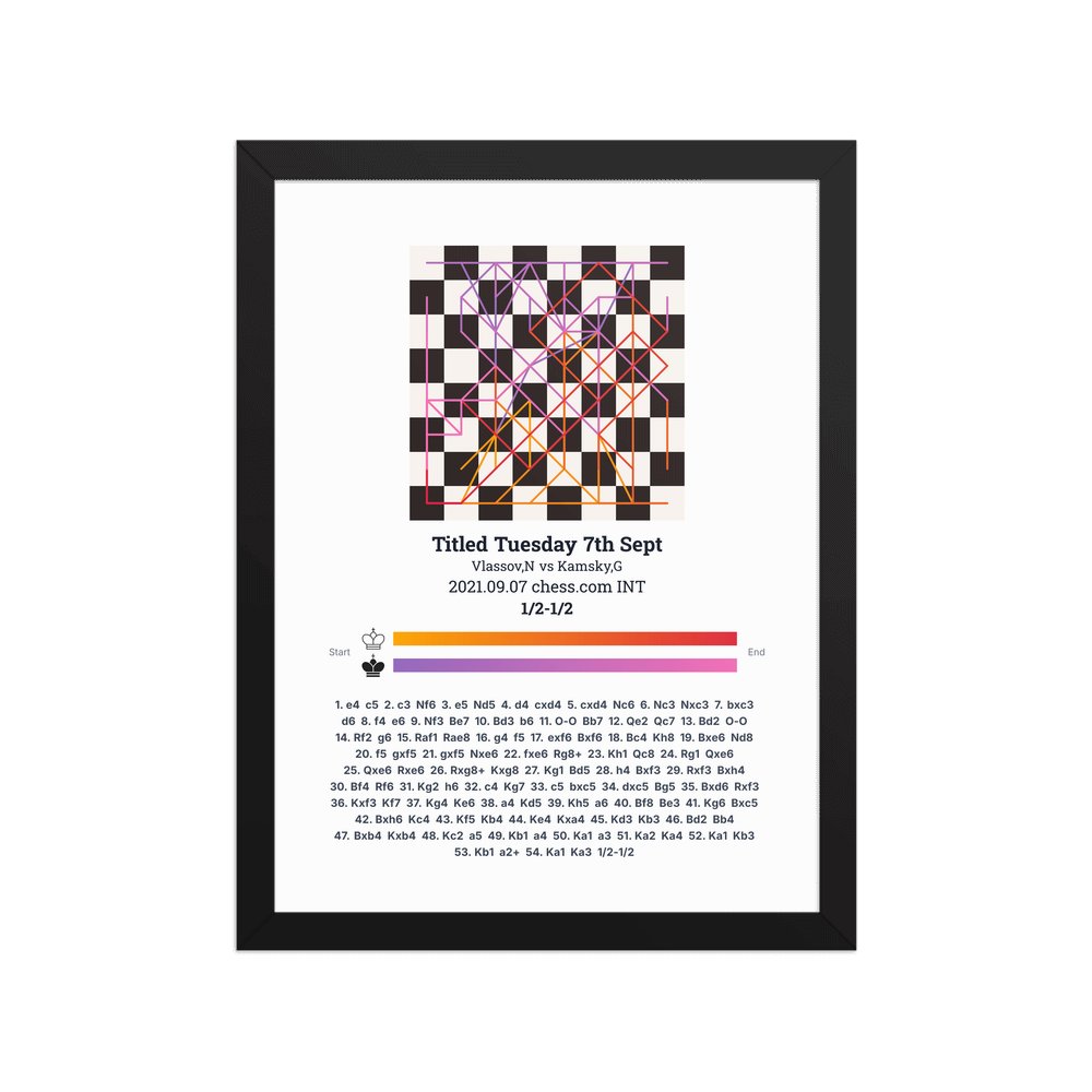 Museum-quality poster on thick, durable matte paper. A sharp, clean look for any chess visualisation.