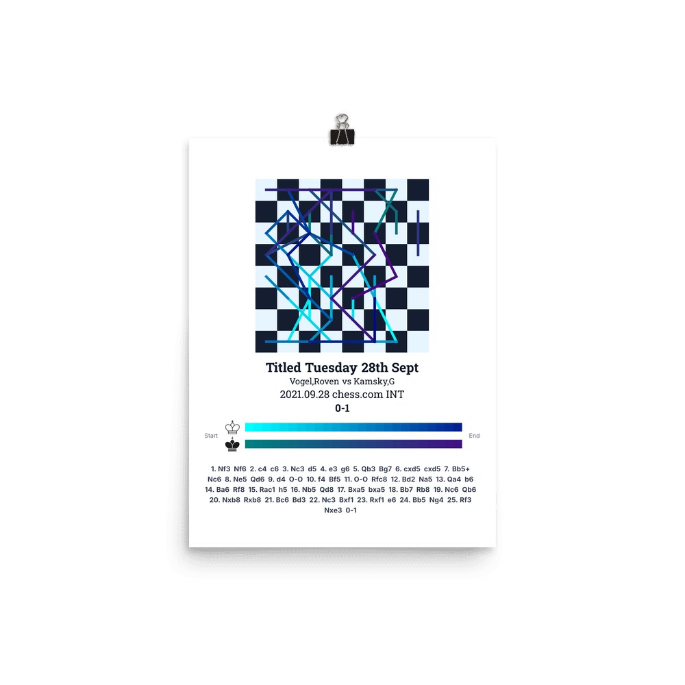 Museum-quality poster on thick, durable matte paper. A sharp, clean look for any chess visualisation.
