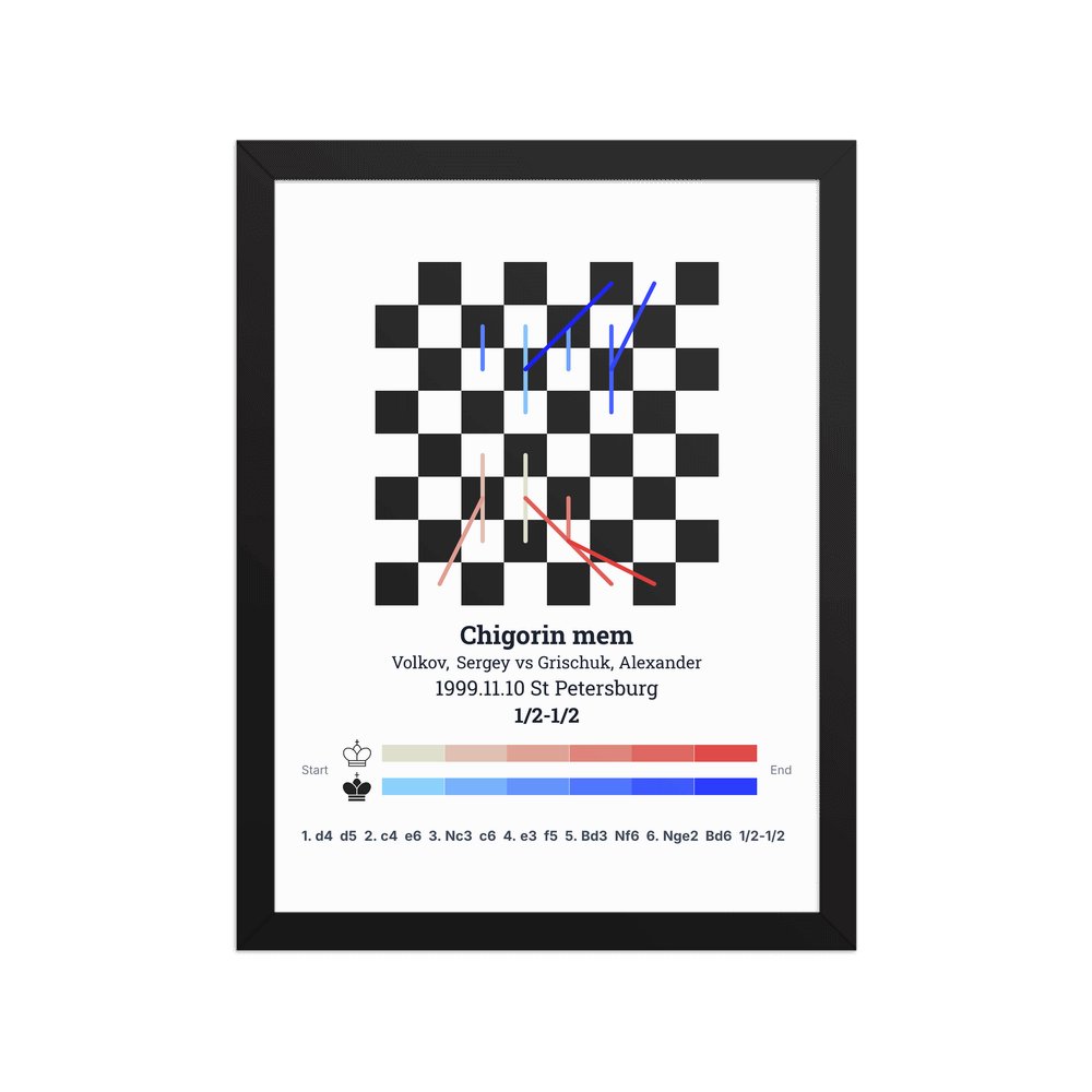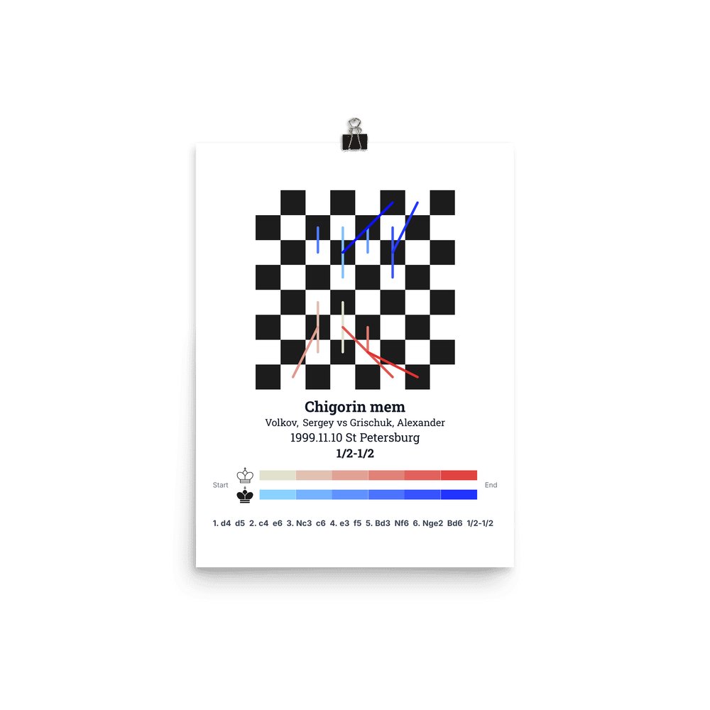 Museum-quality poster on thick, durable matte paper. A sharp, clean look for any chess visualisation.