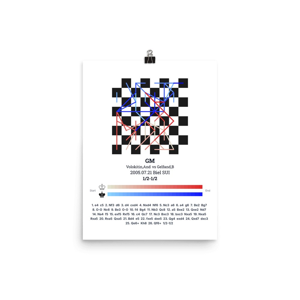 Museum-quality poster on thick, durable matte paper. A sharp, clean look for any chess visualisation.