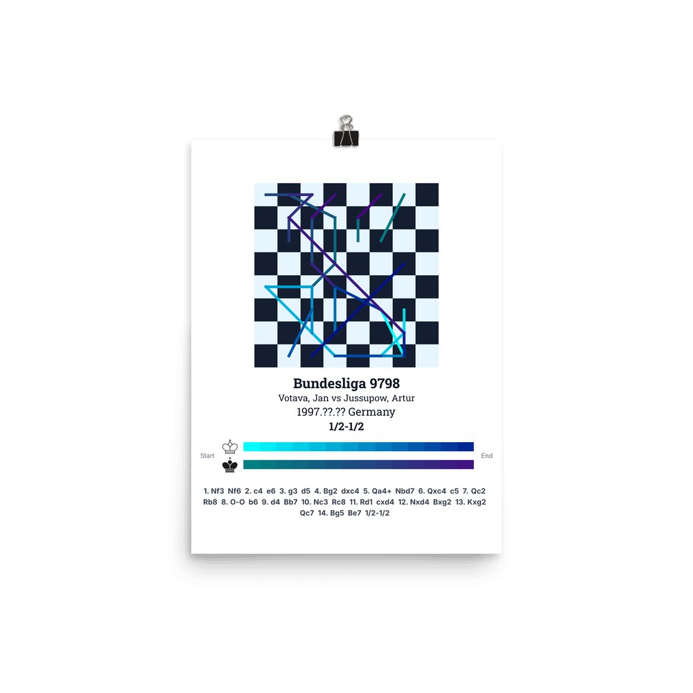 Museum-quality poster on thick, durable matte paper. A sharp, clean look for any chess visualisation.