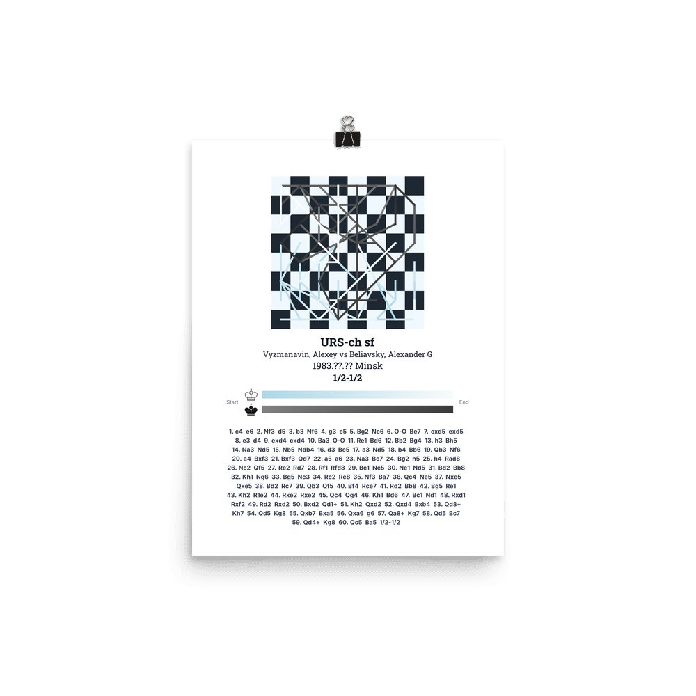 Museum-quality poster on thick, durable matte paper. A sharp, clean look for any chess visualisation.