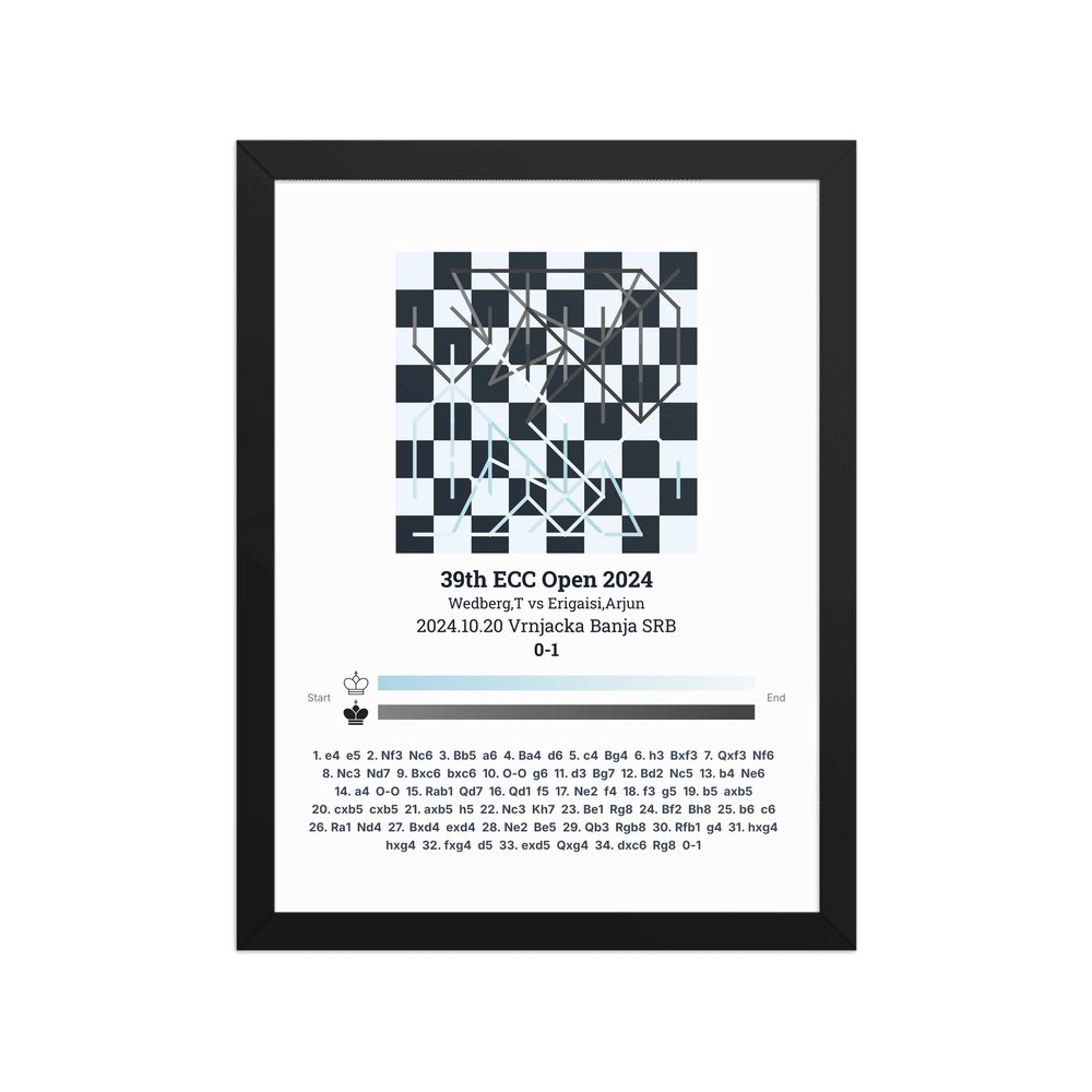 Museum-quality poster on thick, durable matte paper. A sharp, clean look for any chess visualisation.