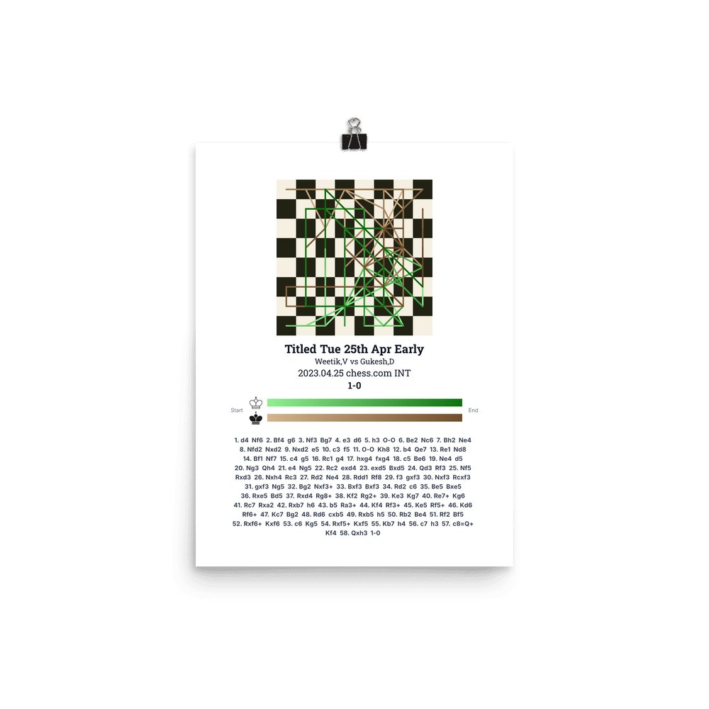 Museum-quality poster on thick, durable matte paper. A sharp, clean look for any chess visualisation.