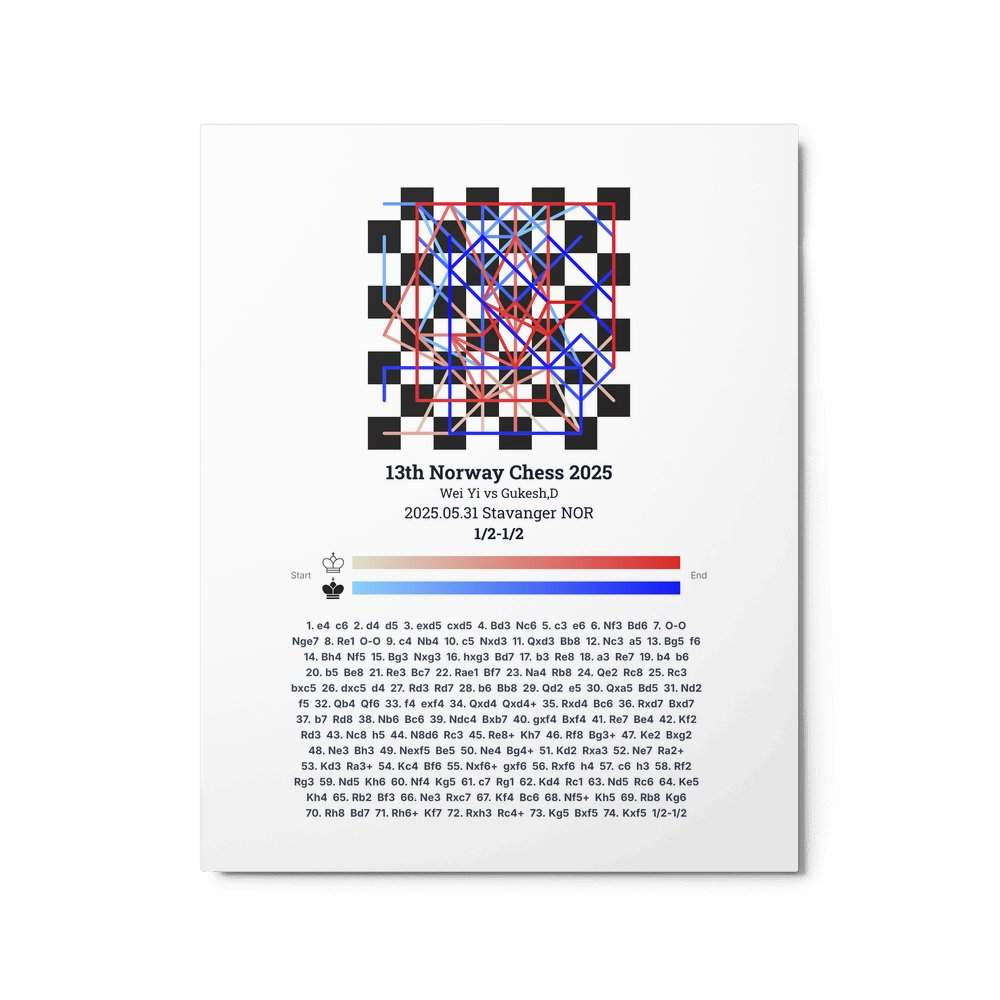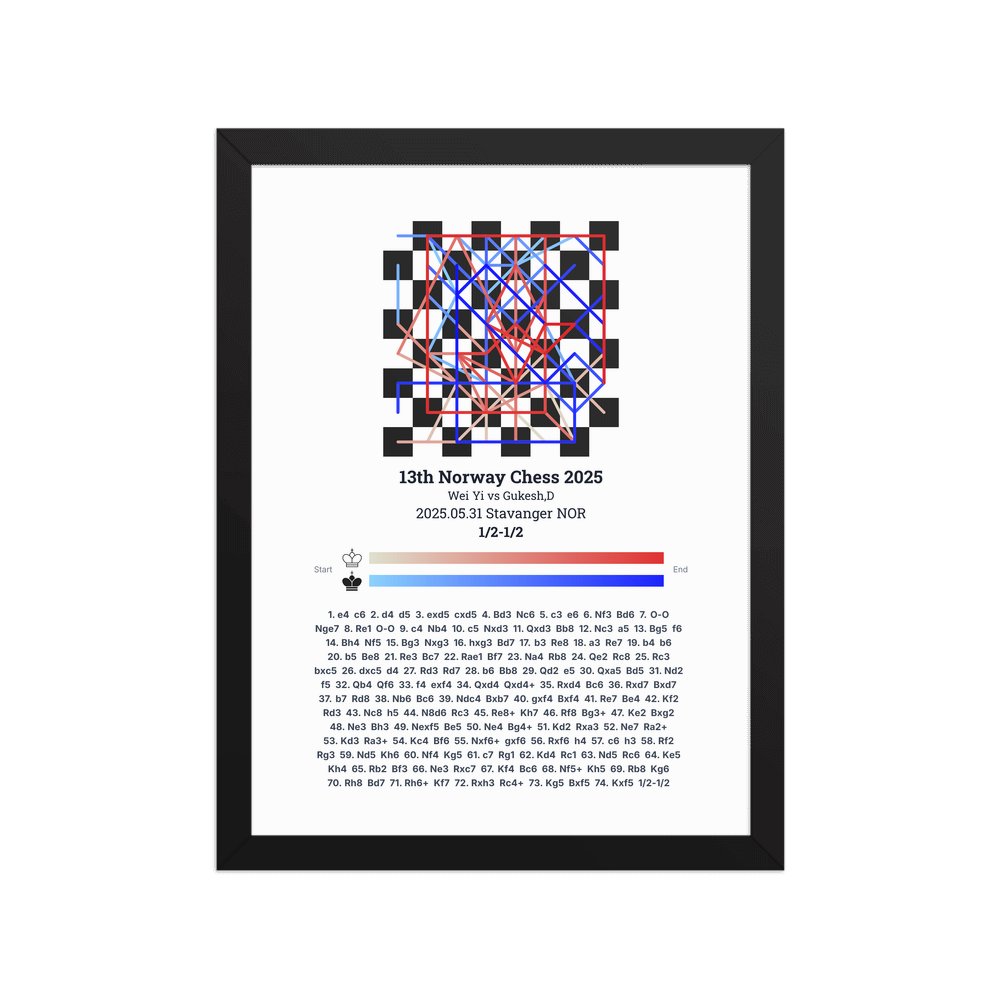 Museum-quality poster on thick, durable matte paper. A sharp, clean look for any chess visualisation.