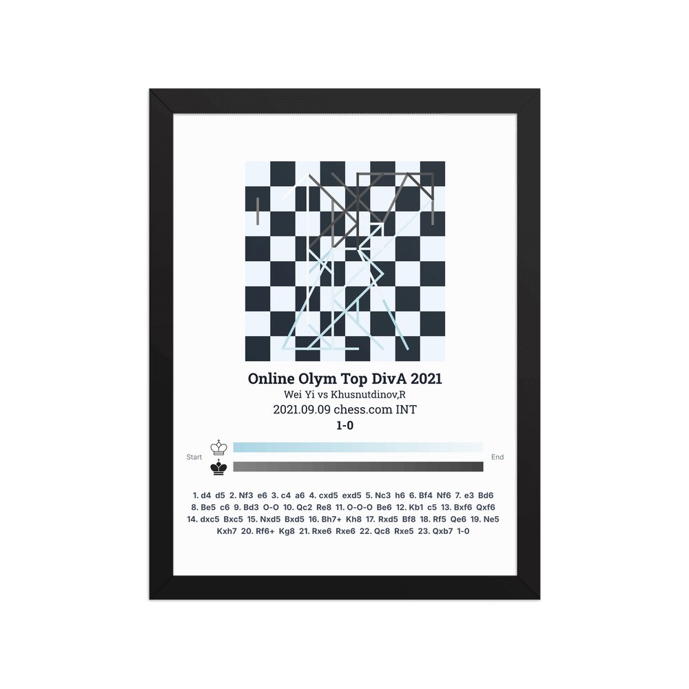 Museum-quality poster on thick, durable matte paper. A sharp, clean look for any chess visualisation.
