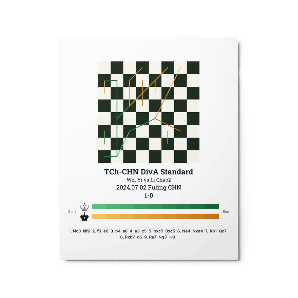 Museum-quality poster on thick, durable matte paper. A sharp, clean look for any chess visualisation.