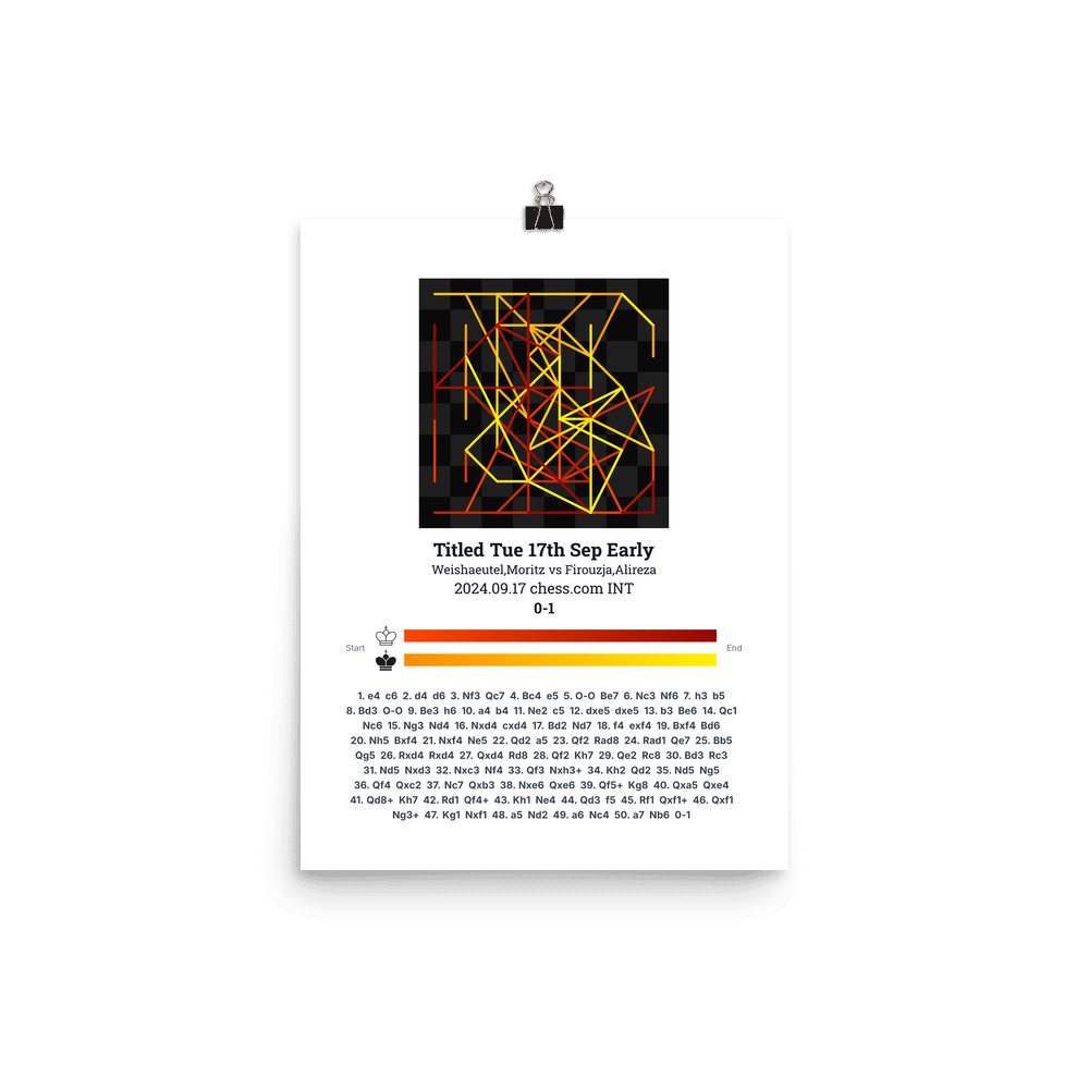 Museum-quality poster on thick, durable matte paper. A sharp, clean look for any chess visualisation.