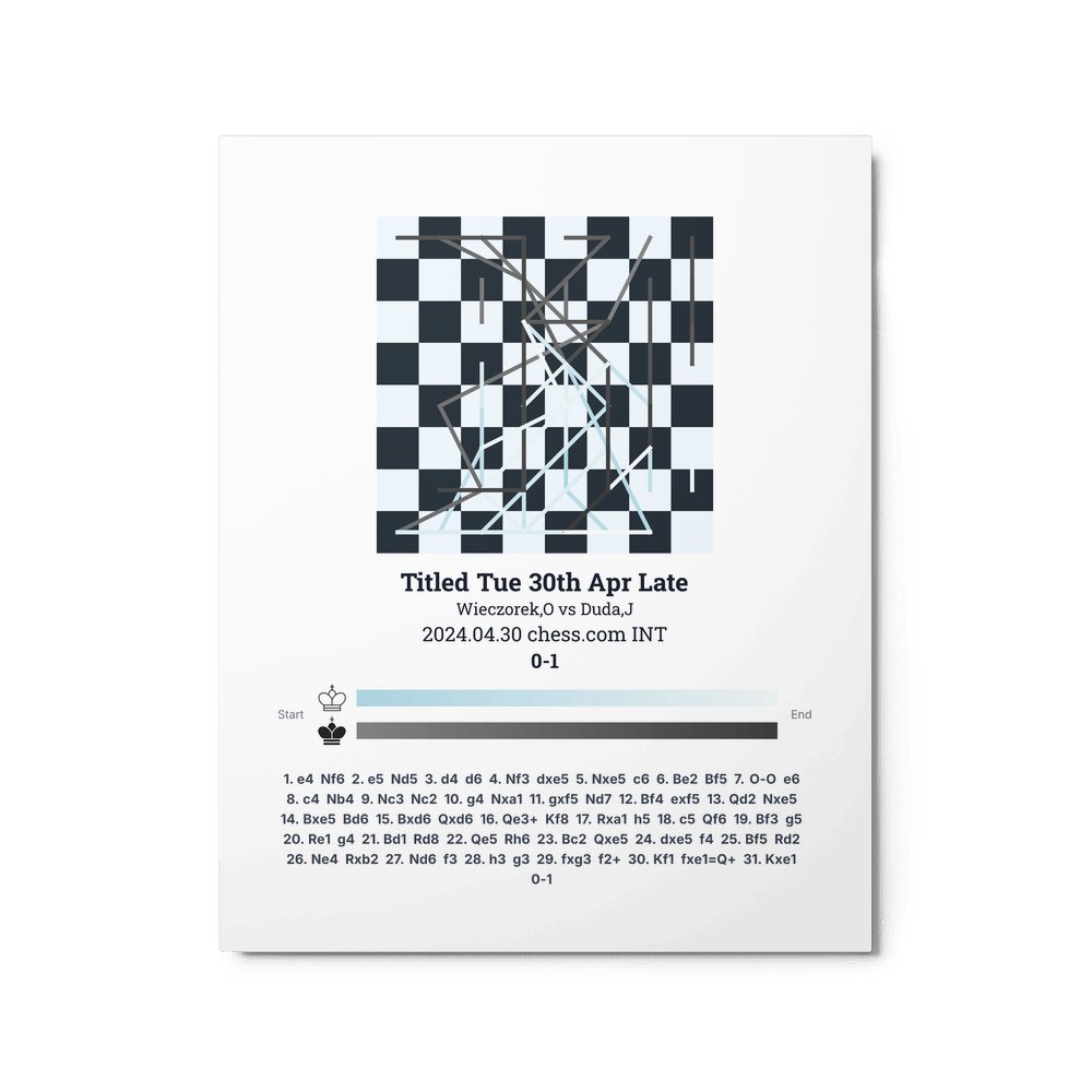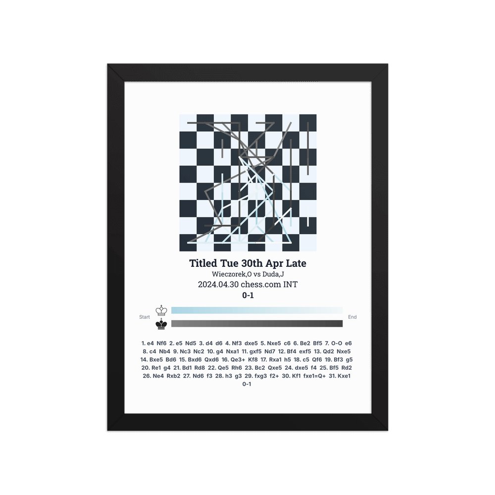Museum-quality poster on thick, durable matte paper. A sharp, clean look for any chess visualisation.