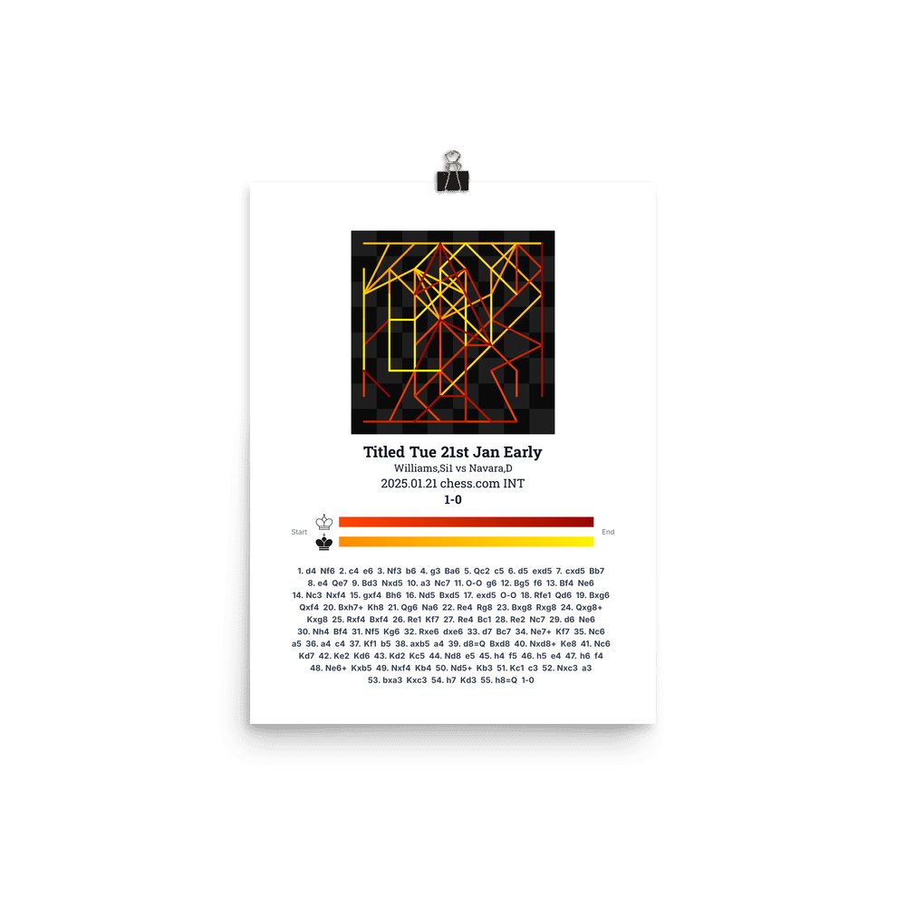 Museum-quality poster on thick, durable matte paper. A sharp, clean look for any chess visualisation.